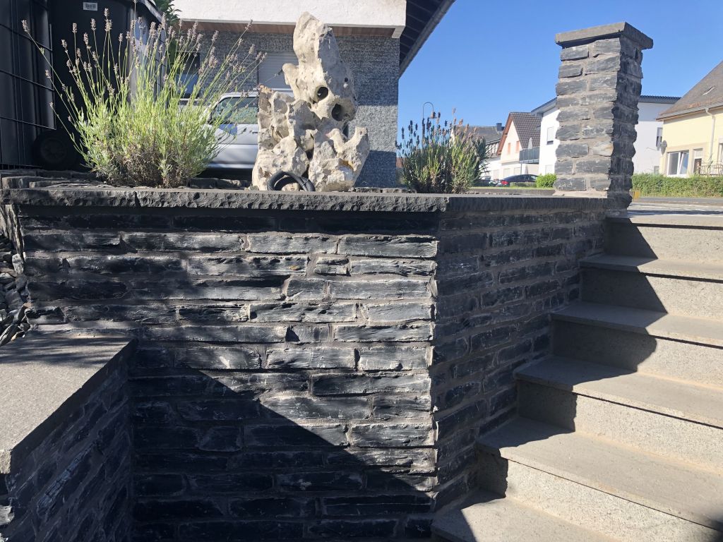 - Herstellen von Großpflaster, Kleinpflaster, Mosaik, Natursteinplatten, Betonsteinen, Betonplatten, Keramikplatten, Pflasterflächen, Randeinfassungen, Bruchsteinmauern, Trockenmauern, Gabionen und Natursteinmauern aller Art